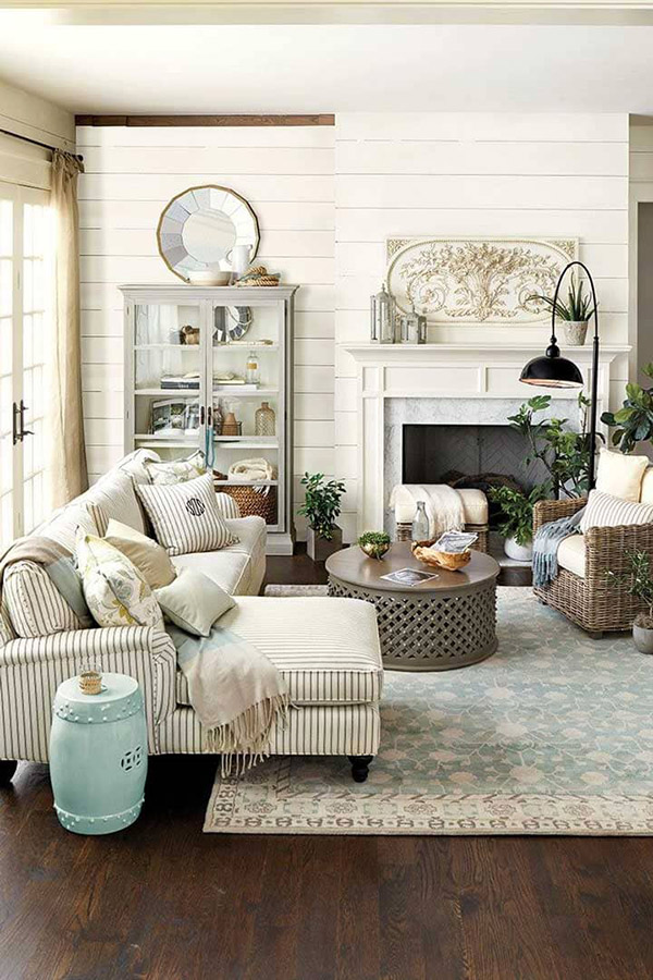 Chắc chắn với phong cách đồng quê bạn sẽ phải có một chiếc bàn uống trà ở trung tâm căn phòng, bên cạnh đó sẽ có những tủ, kệ đặc trưng (theo Gustavian hay thiết kế thế kỷ 18). Đặc biệt không thể thiếu những chiếc gối nhỏ.
